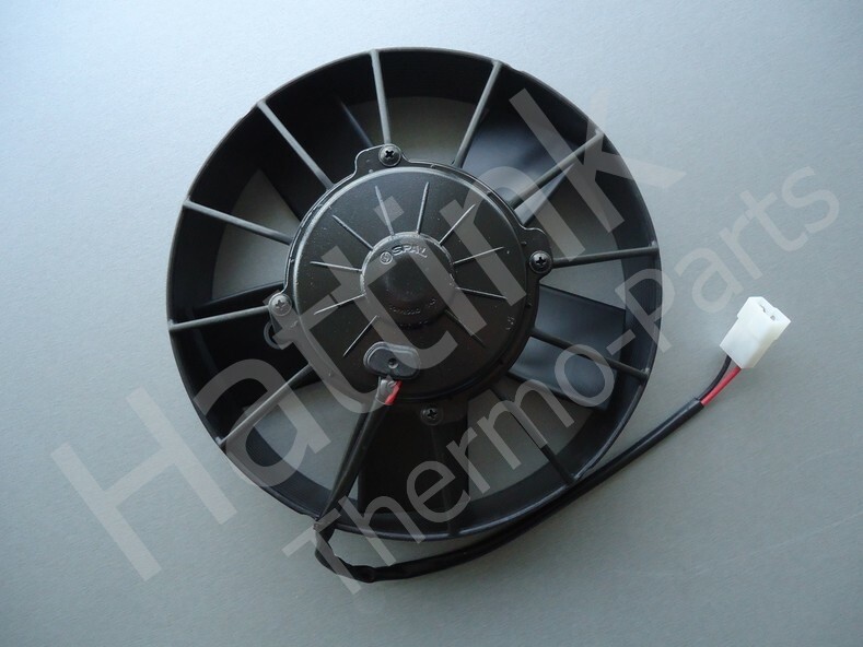 Spal-Lüfter 12 V/24 V, die Luft vom Gitter zur Montageseite blasen (gekennzeichnet mit einem S). Ein saugender Spal-Lüfter 12V/24V (gekennzeichnet mit einem A) saugt die Luft von der Montageseite zum Gitter über dem Motor.